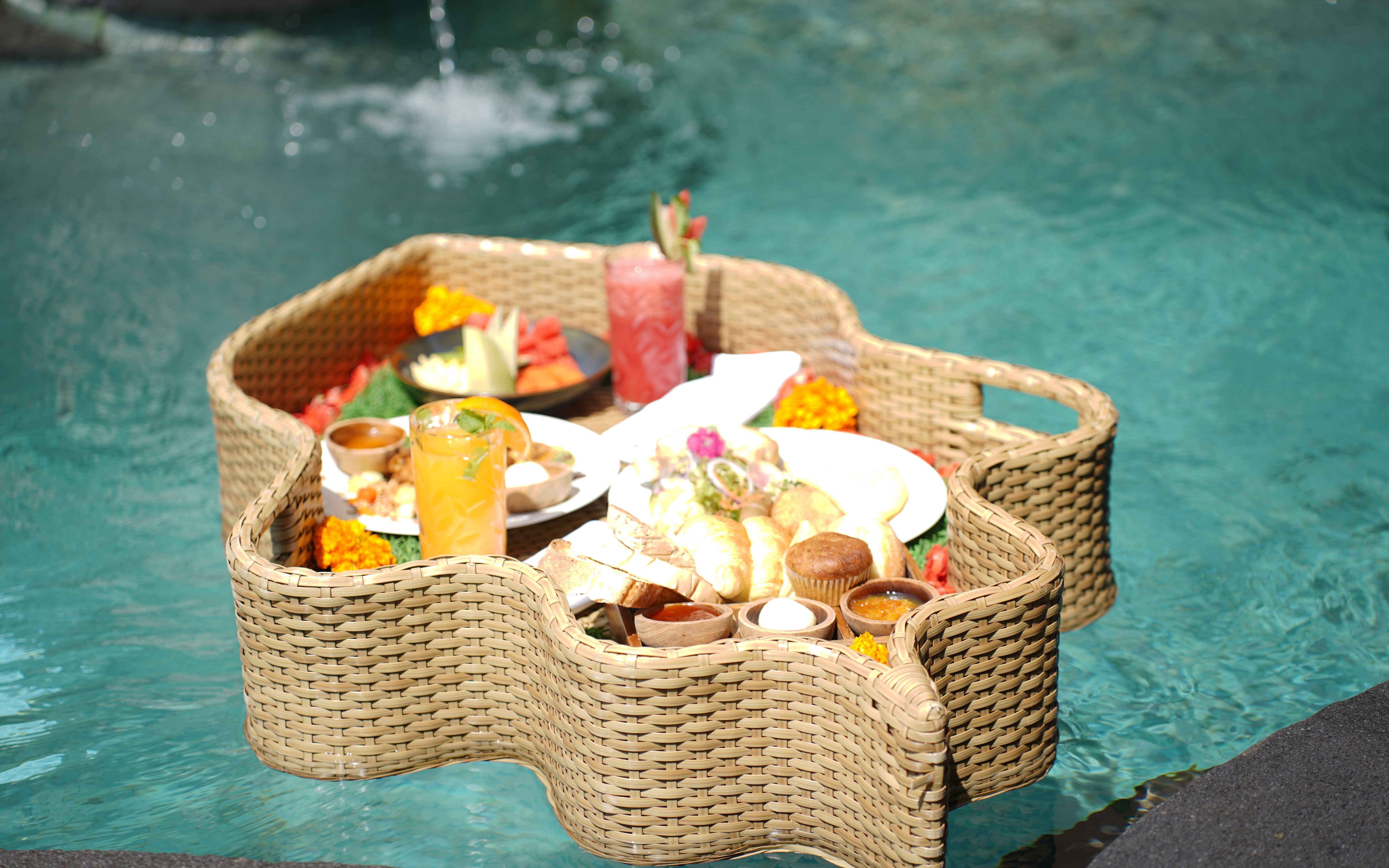 Enjoy a luxurious floating breakfast served in your villa private pool, where you can savor delicious treats while surrounded by serene waters and breathtaking views.